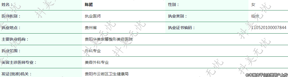 主要執(zhí)業(yè)機(jī)構(gòu):貴陽華美紫馨整形美容醫(yī)院