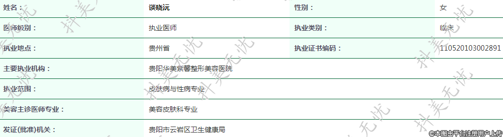 主要執(zhí)業(yè)機(jī)構(gòu):貴陽華美紫馨整形美容醫(yī)院