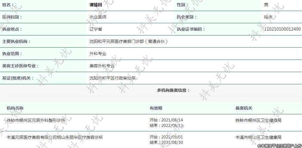 主要執(zhí)業(yè)機構:沈陽和平元辰醫(yī)療美容門診部(普通合伙)