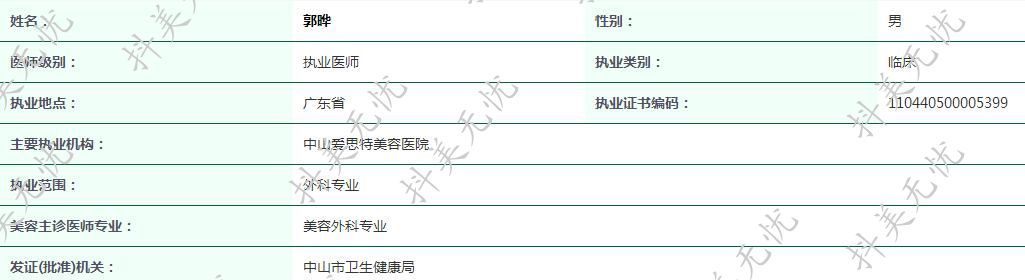 主要執(zhí)業(yè)機(jī)構(gòu):中山愛思特美容醫(yī)院