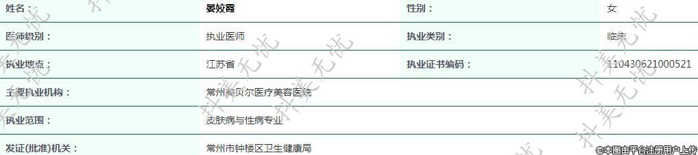 主要執(zhí)業(yè)機(jī)構(gòu):常州美貝爾醫(yī)療美容醫(yī)院
