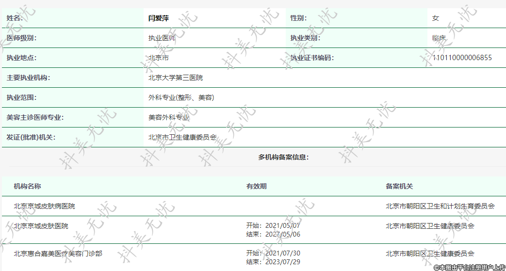 執(zhí)業(yè)范圍:外科專業(yè)(整形、美容)