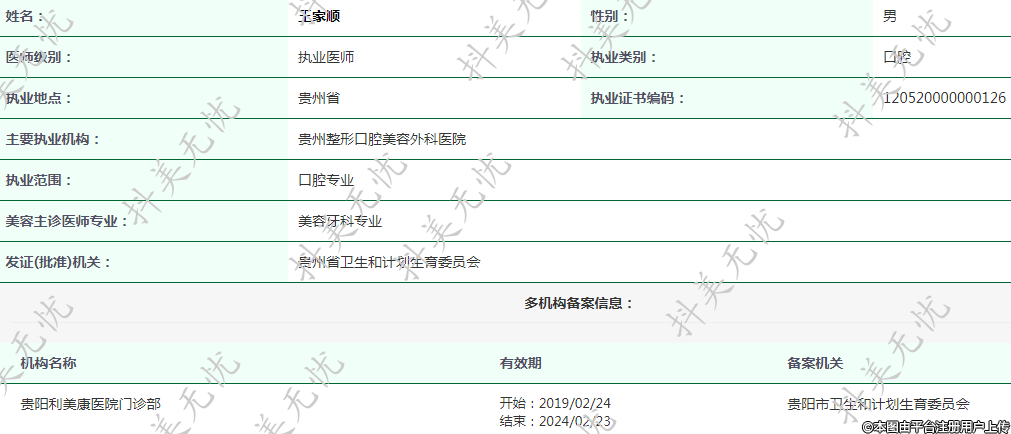 主要執(zhí)業(yè)機構(gòu):貴州整形口腔美容外科醫(yī)院