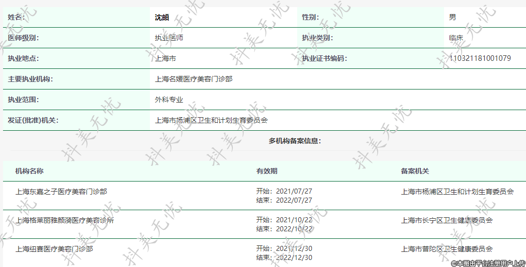 主要執(zhí)業(yè)機構(gòu):上海名媛醫(yī)療美容門診部