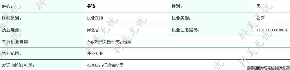 主要執(zhí)業(yè)機構(gòu):石家莊美萊醫(yī)學美容醫(yī)院