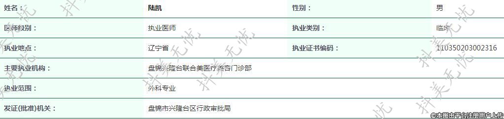 主要執(zhí)業(yè)機構(gòu):盤錦興隆臺聯(lián)合美醫(yī)療美容門診部