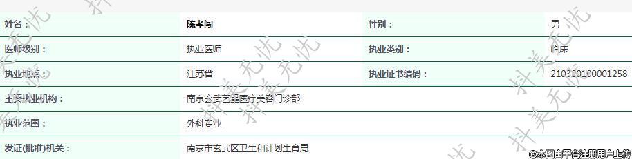 主要執(zhí)業(yè)機(jī)構(gòu):南京玄武藝星醫(yī)療美容門(mén)診部