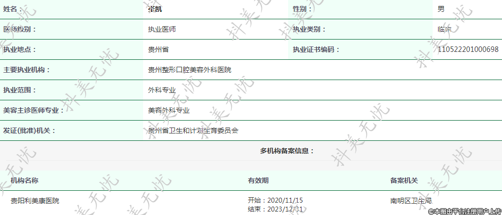 主要執(zhí)業(yè)機構:貴州整形口腔美容外科醫(yī)院
