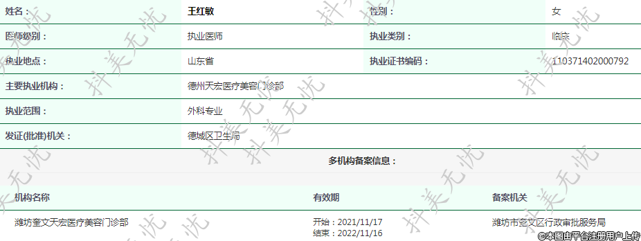 主要執(zhí)業(yè)機(jī)構(gòu):德州天宏醫(yī)療美容門診部
