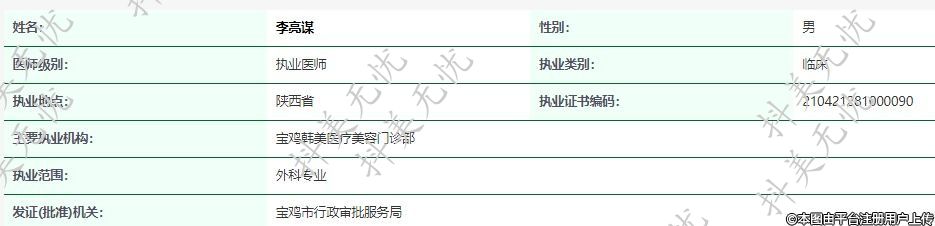 主要執(zhí)業(yè)機(jī)構(gòu):寶雞韓美醫(yī)療美容門(mén)診部