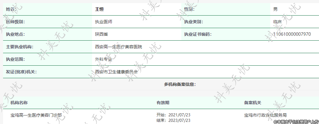 主要執(zhí)業(yè)機(jī)構(gòu):西安高一生醫(yī)療美容醫(yī)院