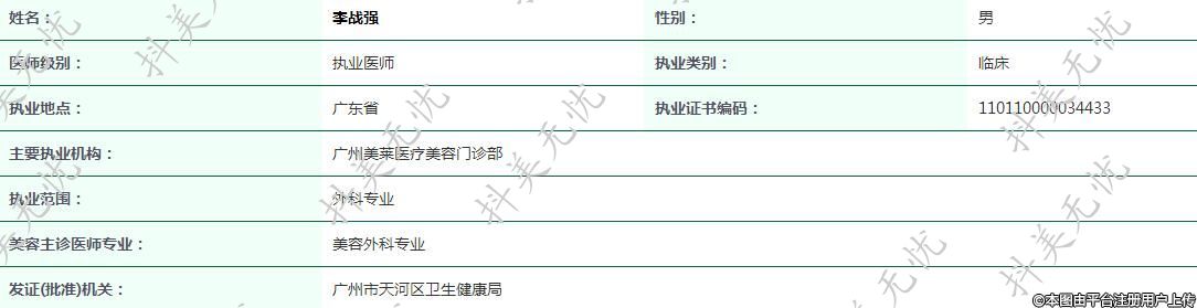 主要執(zhí)業(yè)機構:廣州美萊醫(yī)療美容門診部