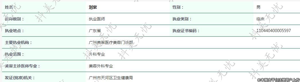 主要執(zhí)業(yè)機(jī)構(gòu):廣州美萊醫(yī)療美容門診部