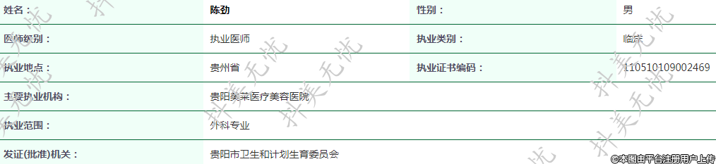 主要執(zhí)業(yè)機構:貴陽美萊醫(yī)療美容醫(yī)院
