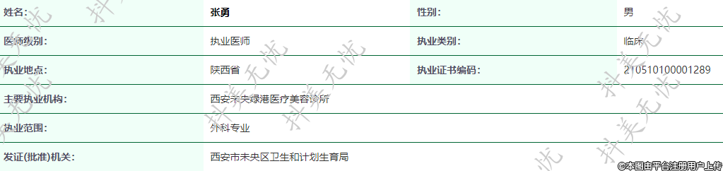主要執(zhí)業(yè)機(jī)構(gòu):西安未央綠港醫(yī)療美容診所