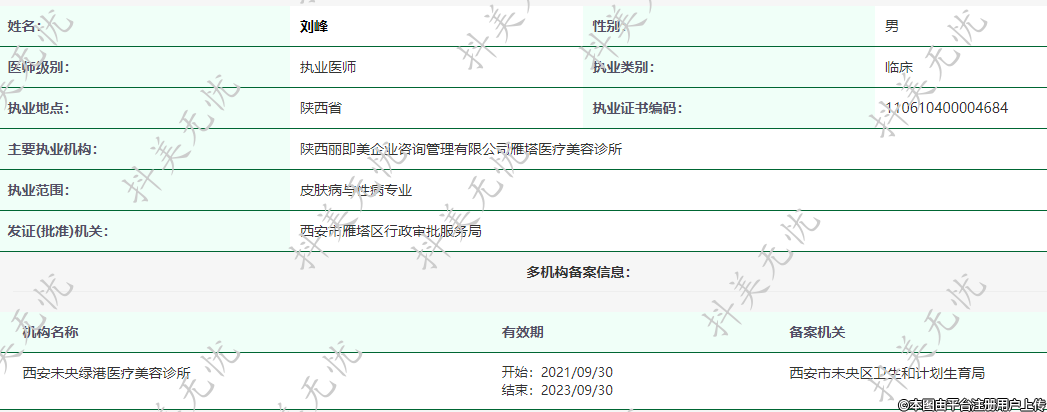 主要執(zhí)業(yè)機(jī)構(gòu):陜西麗即美企業(yè)咨詢(xún)管理有限公司雁塔醫(yī)療美容診所