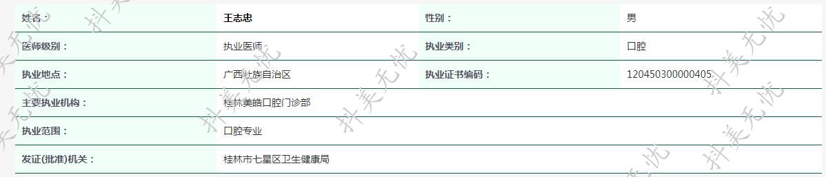 主要執(zhí)業(yè)機構(gòu):桂林美皓口腔門診部