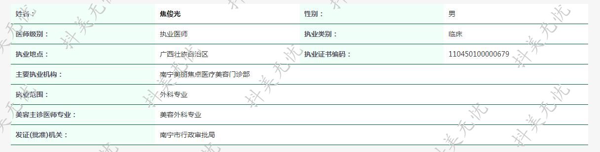 現(xiàn)任柳州美麗焦點執(zhí)業(yè)醫(yī)師