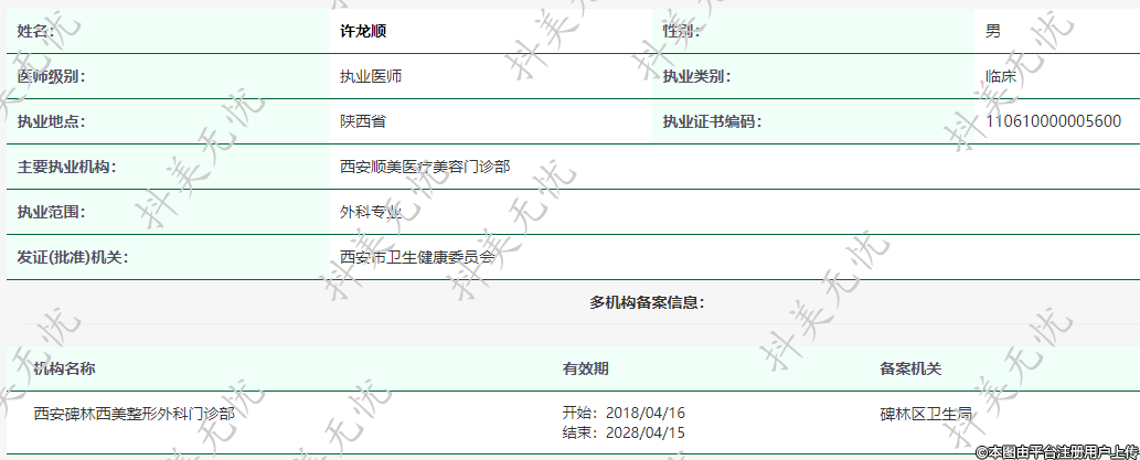 主要執(zhí)業(yè)機(jī)構(gòu):西安順美醫(yī)療美容門(mén)診部