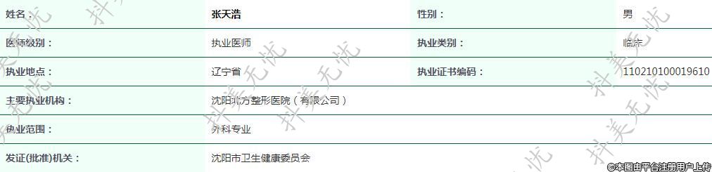 主要執(zhí)業(yè)機(jī)構(gòu):沈陽北方整形醫(yī)院(有限公司)