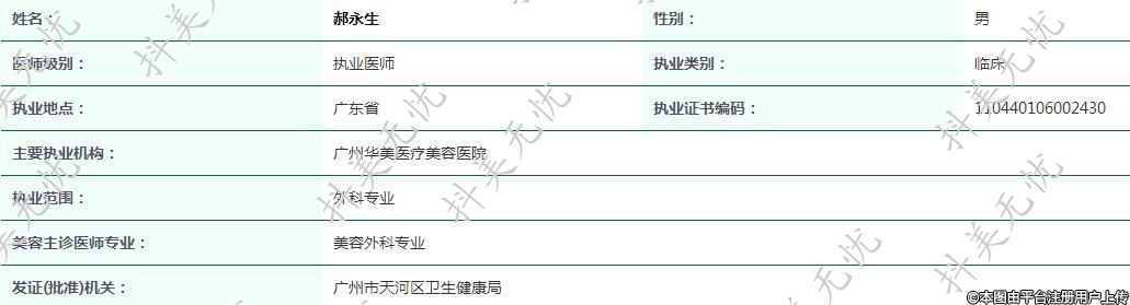主要執(zhí)業(yè)機構:廣州華美醫(yī)療美容醫(yī)院