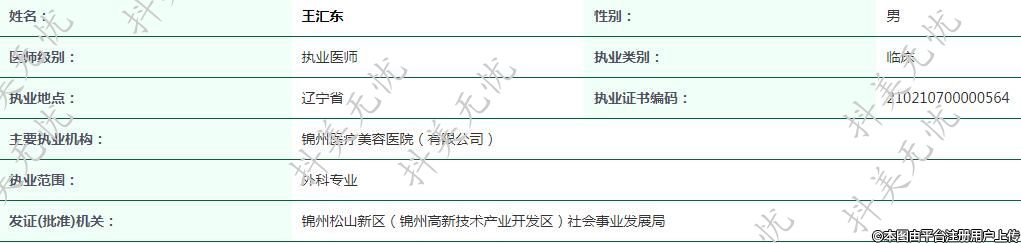 主要執(zhí)業(yè)機(jī)構(gòu):錦州醫(yī)療美容醫(yī)院(有限公司)