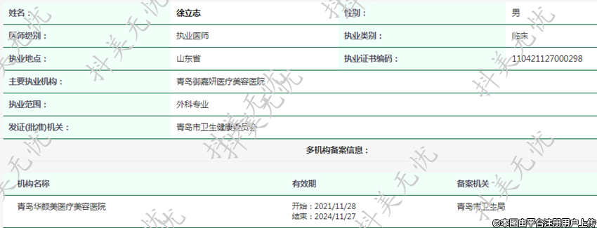 主要執(zhí)業(yè)機構(gòu):青島御嘉妍醫(yī)療美容醫(yī)院