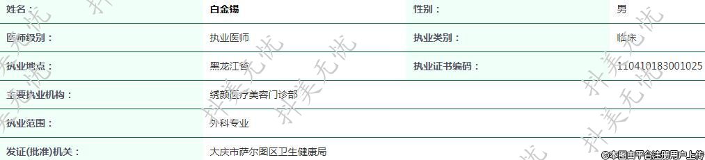 大慶繡顏醫(yī)療美容執(zhí)業(yè)醫(yī)師