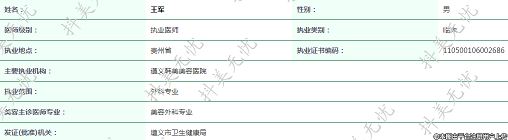 主要執(zhí)業(yè)機(jī)構(gòu):遵義韓美美容醫(yī)院