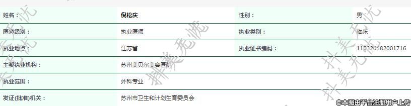 主要執(zhí)業(yè)機構(gòu):蘇州美貝爾美容醫(yī)院