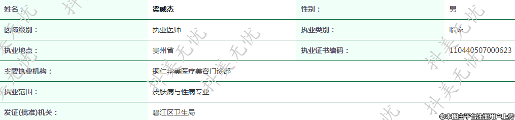 主要執(zhí)業(yè)機(jī)構(gòu):銅仁華美醫(yī)療美容門診部