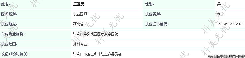 主要執(zhí)業(yè)機(jī)構(gòu):張家口維多利亞醫(yī)療美容醫(yī)院