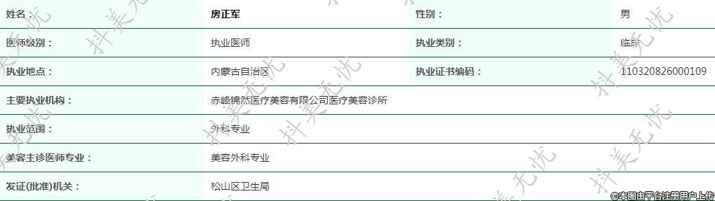 主要執(zhí)業(yè)機(jī)構(gòu):赤峰錦然醫(yī)療美容有限公司醫(yī)療美容診所