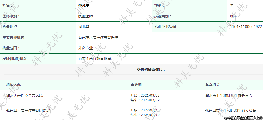 現(xiàn)任石家莊天宏醫(yī)療美容醫(yī)院執(zhí)業(yè)醫(yī)師