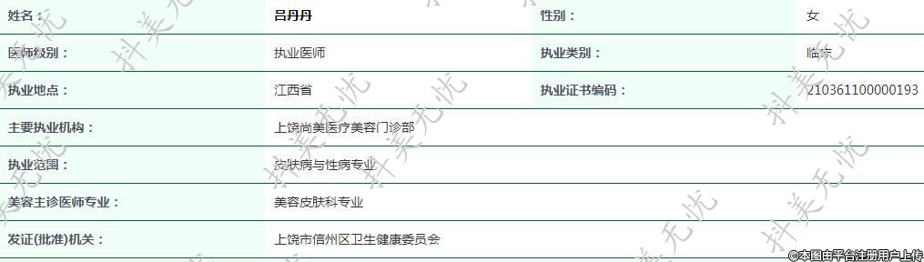 主要執(zhí)業(yè)機(jī)構(gòu):上饒尚美醫(yī)療美容門(mén)診部