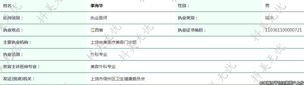 主要執(zhí)業(yè)機構(gòu):上饒尚美醫(yī)療美容門診部
