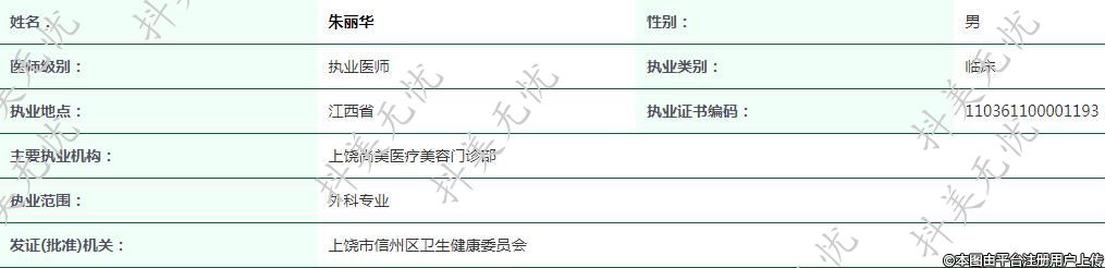 主要執(zhí)業(yè)機(jī)構(gòu):上饒尚美醫(yī)療美容門診部