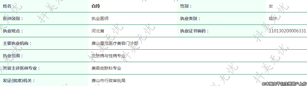 主要執(zhí)業(yè)機構(gòu):唐山星范醫(yī)療美容門診部