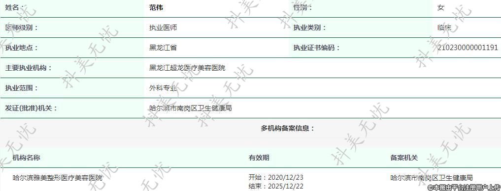 黑龍江超龍醫(yī)療美容執(zhí)業(yè)醫(yī)師