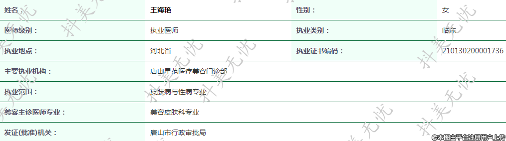 主要執(zhí)業(yè)機構(gòu):唐山星范醫(yī)療美容門診部