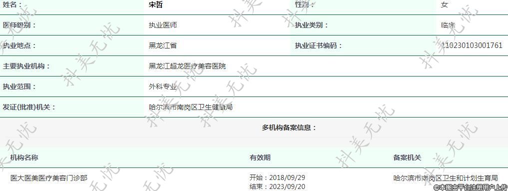 黑龍江超龍醫(yī)療美容執(zhí)業(yè)醫(yī)師