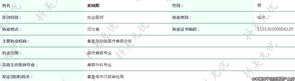 現(xiàn)任秦皇島釹娃醫(yī)療美容執(zhí)業(yè)醫(yī)師