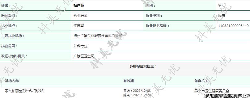 主要執(zhí)業(yè)機(jī)構(gòu):揚(yáng)州廣陵艾菲斯醫(yī)療美容門診部
