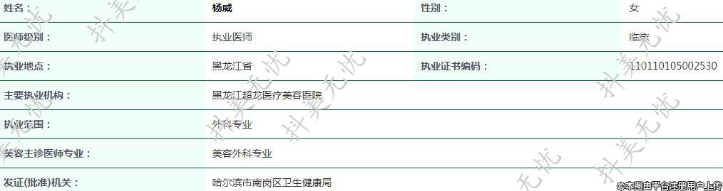 黑龍江超龍醫(yī)療美容執(zhí)業(yè)醫(yī)師