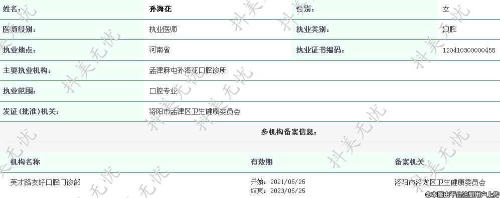 主要執(zhí)業(yè)機構:孟津麻屯孫海花口腔診所