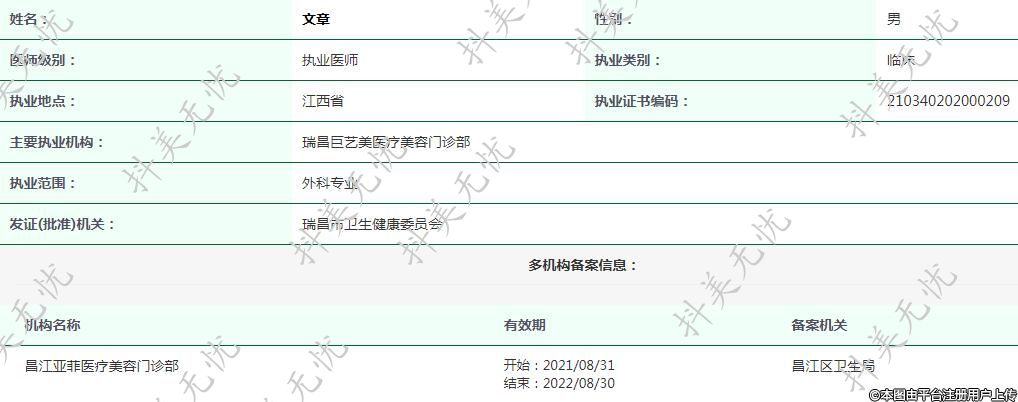 主要執(zhí)業(yè)機構(gòu):瑞昌巨藝美醫(yī)療美容門診部