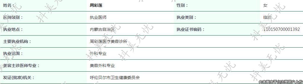 主要執(zhí)業(yè)機構(gòu):周彩蓮醫(yī)療美容診所