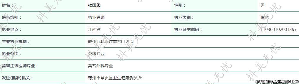 主要執(zhí)業(yè)機構:贛州亞韓醫(yī)療美容門診部