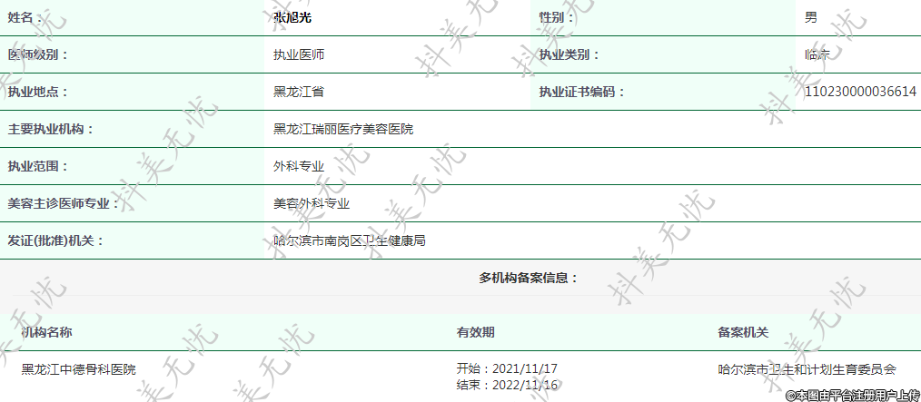 主要執(zhí)業(yè)機構(gòu):黑龍江瑞麗醫(yī)療美容醫(yī)院