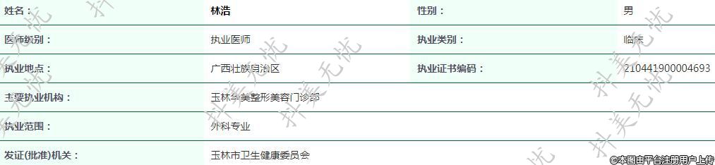 主要執(zhí)業(yè)機構(gòu):玉林華美整形美容門診部